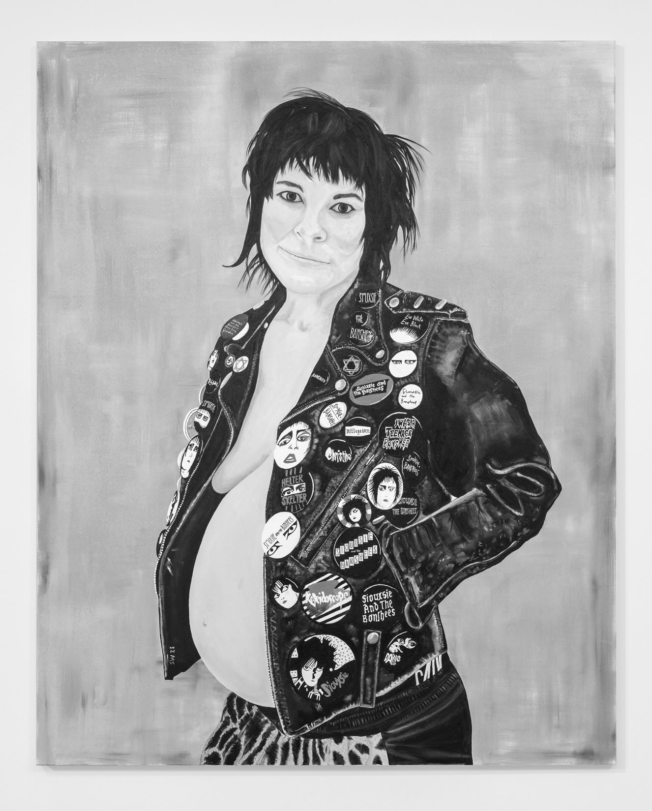 I’ve followed Sue Webster’s work with zeal in the years since that fateful rainy night in my childhood bedroom. I was and remain greatly moved by Webster’s works with Tim Noble, but what positively overwhelms me with feeling are her solo works, those she has created since her separation from Noble. At the center of these works lies Webster’s namesake, Siouxsie Sioux, the force behind the potent, fearsome post-punk band Siouxsie and the Banshees. Siouxsie appears throughout Webster’s Full Leather Jackets series (2019-2020), eighteen leather jackets hand-painted with iconography from the artist’s adolescent years spent under the tutelage of the Banshees: Siouxsie’s spiky hair, heavy-lidded eyes, and lined lips; badges and passes from Webster’s travels following the band on tour; Banshees members Kenny Norris, Peter Fenton, and Steven Severin in profile.